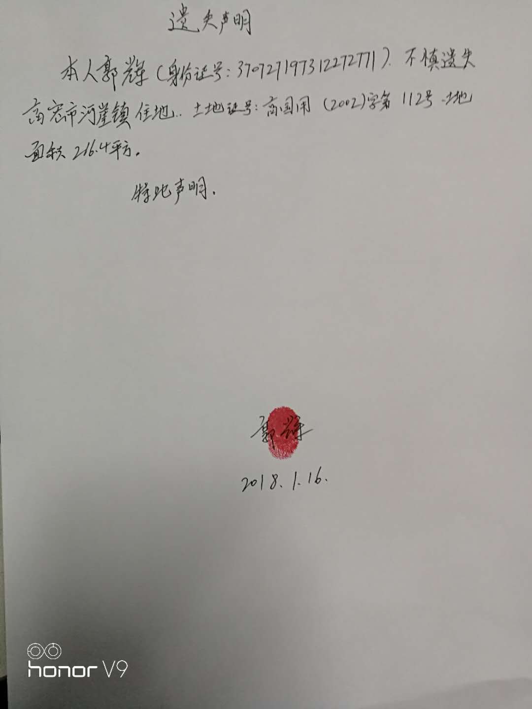 > 不动产权证书遗失公告——郭辉